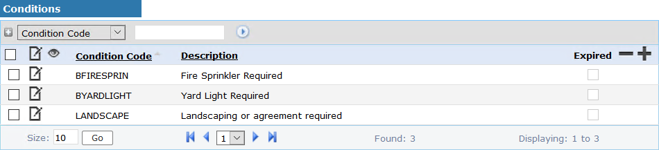 Conditions are requirements or restrictions, separate from the normal workflow, which must be met before a permit may be issued, an inspection passed, or a case closed. Some conditions may halt the progression of the case until they are met or resolved. From here, you may add, edit, or remove conditions as needed.